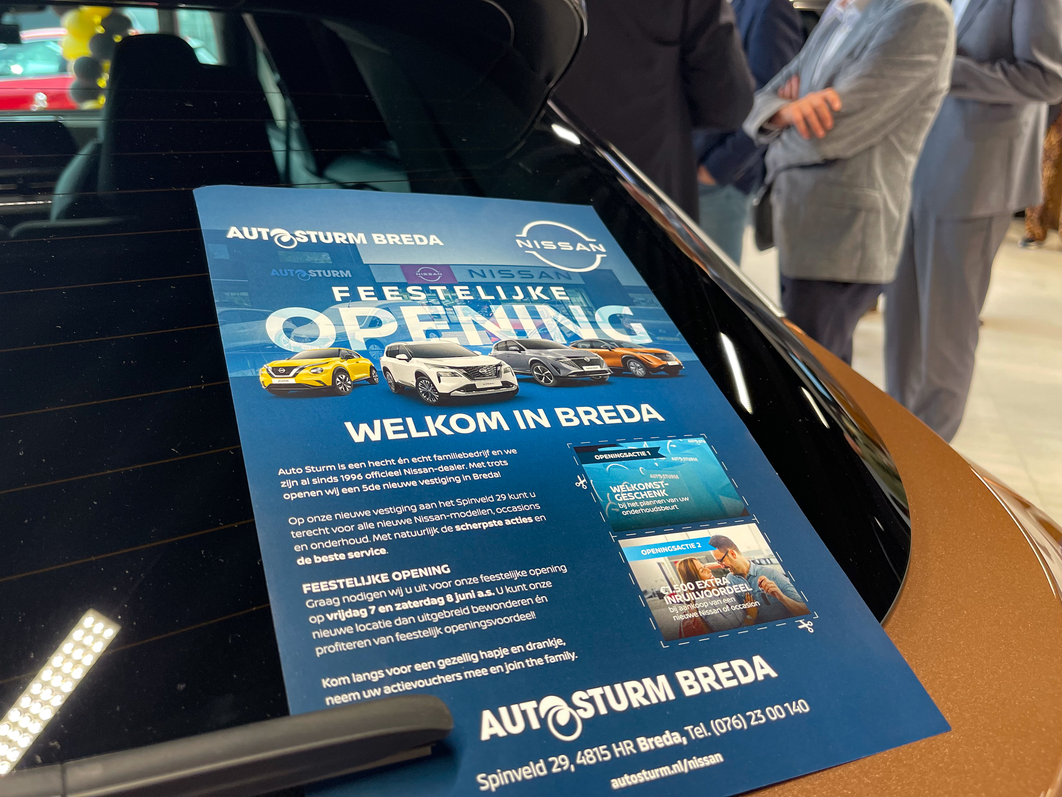 Het openingsweekend werd ingeluid door een samenzijn van uitgenodigde zakelijke relaties. Volgens traditie werd de Nissan showroom veel voorspoed gewenst via de bekende Daruma. Veel vaste relaties van ons nieuwe merk Mitsubishi en ook van toeleveranciers waren van de partij. Aansluitend werd er 's avonds een feestelijke opening georganiseerd voor alle werknemers van Auto Sturm.